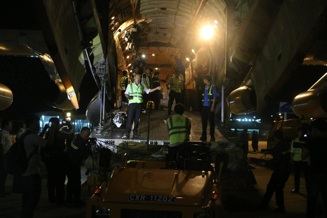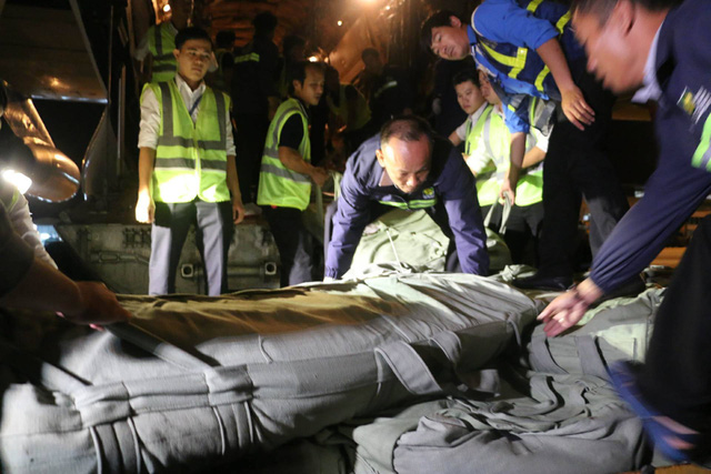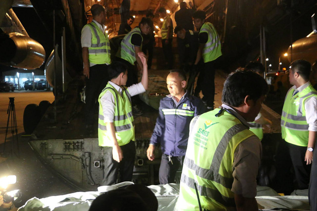 Các hoạt động bốc xếp 40 tấn hàng cứu trợ từ Nga được thực hiện ngay trong rạng sáng 9/11.
