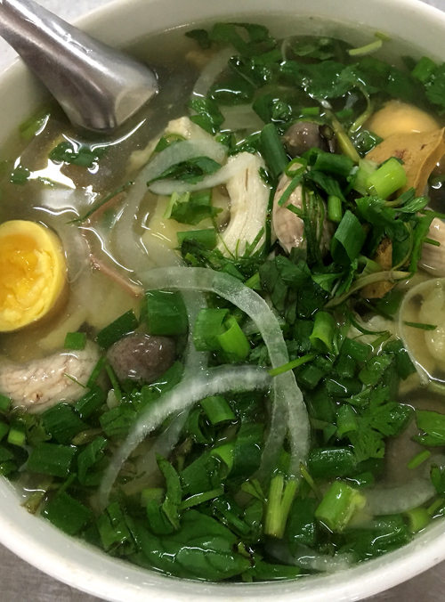 Thế nên, cứ hễ khi nào thèm hành chần, là phải đến quán làm bát phở. Hành chần là chính, phở bánh chỉ là tùy. Nói ngoa thế thôi, hành chần sao bằng phở ngon gà mềm được. Tuy nổi tiếng, nhưng giá cả cũng khá dễ chịu: 35.000 đồng, ăn cao giá hơn cũng được.