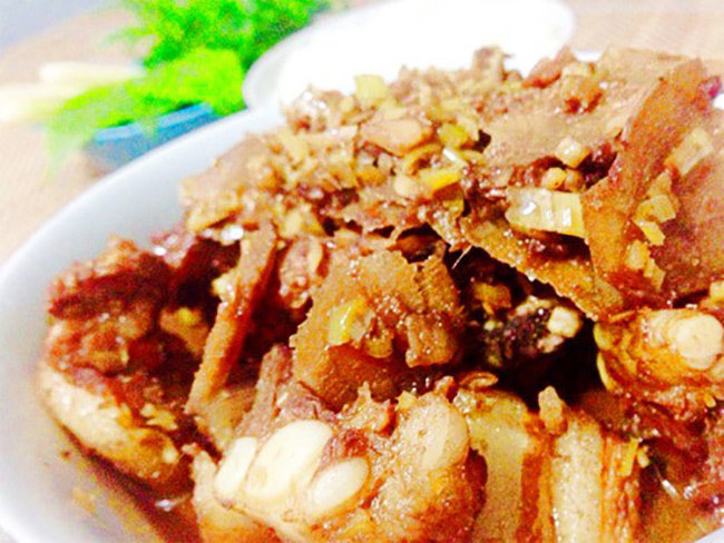 Khi nước sốt còn lại sền sệt thì tắt bếp. Cho món ăn ra đĩa thưởng thức ngay khi còn nóng. Món thịt chân giò giả cầy là món ăn rất thích hợp cho những ngày đông lạnh. Món ăn vừa đậm đà, hấp dẫn, đưa cơm ngay cả những ai khó tính.