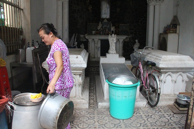 Nhà mồ bị người dân tự do ra vào làm nơi chứa hàng và để xe.