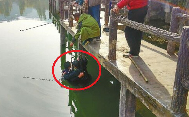 Old  Default Cha già chịu ngâm mình dưới nước đỡ con hơn 1 tạ ngã xuống hồ suốt 20 phút