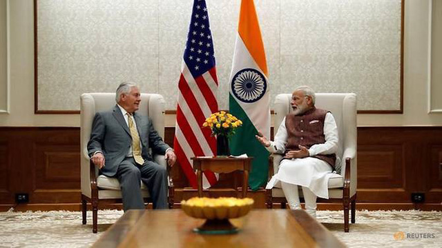 Ngoại trưởng Mỹ Rex Tillerson hội đàm với Thủ tướng Ấn Độ Narendra Modi trong chuyến thăm hồi tháng 10/2017. (Ảnh: Reuters)
