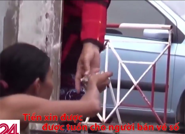 Gần trưa, người phụ nữ này gom hết số tiền xin được buổi sáng tuồn cho người bán vé số ngồi cách sau 1 bức tường, rồi vào nhà xe để nghỉ. Chẳng biết có sự đồng lõa hay không, nhưng khi được hỏi về hoàn cảnh của 2 mẹ con ngồi xin tiền ở cổng bãi giữ xe, người bán vé số trả lời: "Nó không có nhà cửa, con giúp đỡ nó đi".