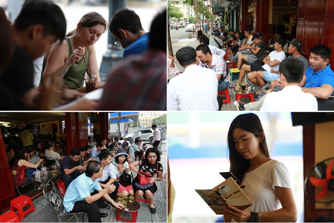 Ngoài khách Việt, không hiếm du khách nước ngoài cũng tìm đến với sự tò mò. Tour xích lô dạo quanh phố cũng chọn quán làm điểm dừng để du khách ngồi lê la vài phút, thử uống cà phê vỉa hè Việt Nam như vị Thủ tướng.