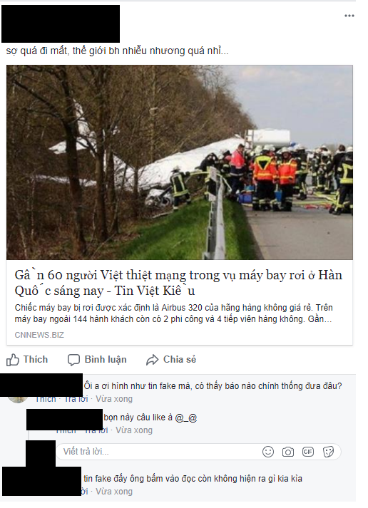 Vietbf.com - Thông tin 60 người Việt Nam thiệt mạng trong vụ máy bay rơi ở Hàn Quốc, đã được chia sẻ với tốc độ chóng mặt trong cộng đồng mạng Việt Nam, khiến chưa đầy 24h làm cộng đồng mạng Việt Nam nháo nhác về thông tin thực thế nào nữa.