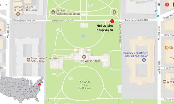 Vụ việc xảy ra tại mặt phía bắc Nhà Trắng. Ảnh: Google.