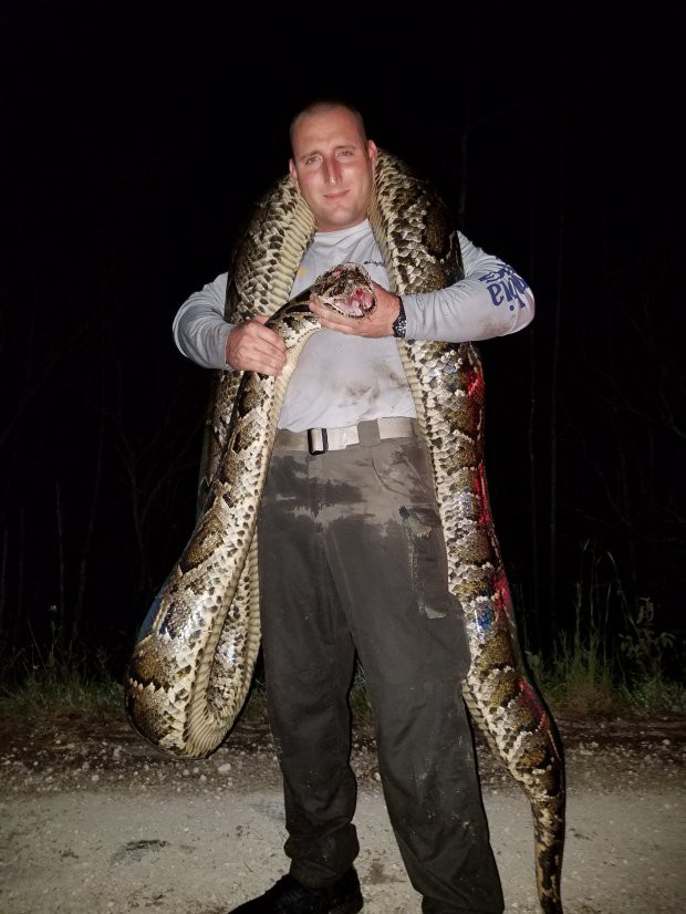 Theo Metro đưa tin, con trăn Miến Điện dài 5m vẫn sống được khoảng 25 phút nữa sau khi bị thợ săn Eric Bramblet bắn vài phát súng vào đầu. Được biết, chàng thợ săn trẻ này được trả tiền để săn trăn, rắn tại Florida, Mỹ khi mà trong tự nhiên, loài động vật này không có kẻ thù. Nhiều người còn kể rằng họ đã thấy những con trăn trong tự nhiên ăn thịt cả cá sấu tại Florida.