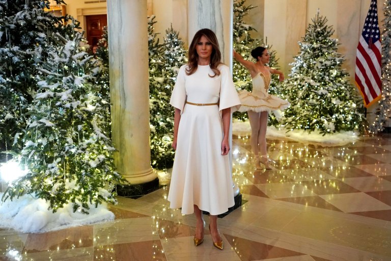 53 cây thông Noel, hơn 12.000 đồ trang trí cùng 18.000 bóng đèn được sử dụng để trang hoàng Nhà Trắng theo ý tưởng của bà Melania (Ảnh: Reuters)