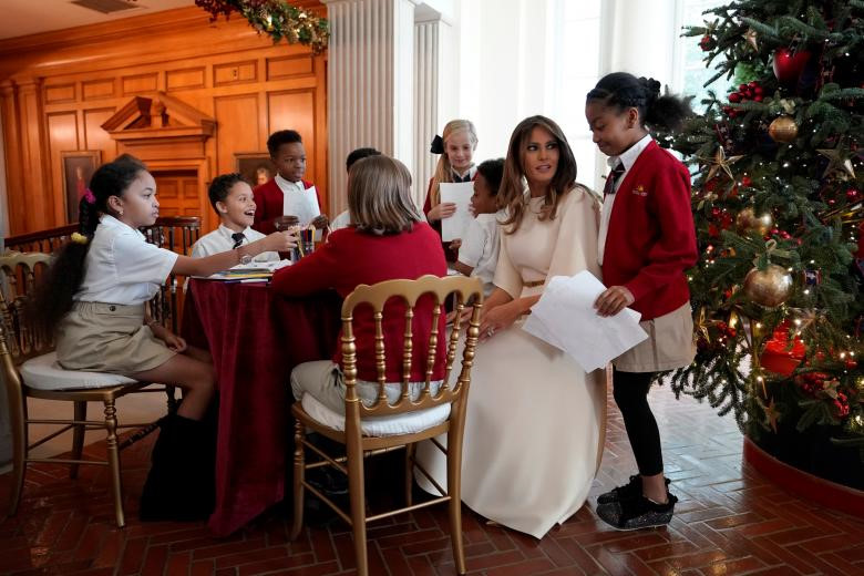Đệ nhất phu nhân hôm 27/11 cũng đã chào đón các học sinh đến quan và trang trí Nhà Trắng.