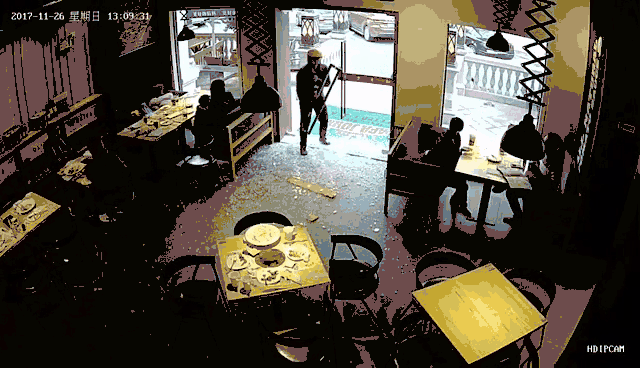 Theo hình ảnh trong đoạn clip, vào chiều ngày 26/11 tại một nhà hàng ở tỉnh Quảng Đông, Trung Quốc đã xuất hiện một cảnh tượng dở khóc dở cười. Không biết từ đâu chạy ra một anh chàng shipper trông còn khá to cao, đầu đội nón mũ kim cô, áo xống chỉnh tề, đột nhiên lao vào trong một nhà hàng với tốc độ "sét đánh ngang tai".