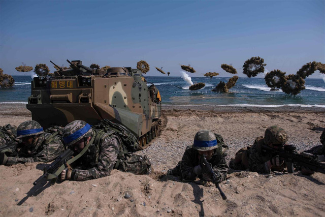 Quân đội Hàn Quốc và Mỹ tập trận chung tại Hàn Quốc vào tháng 3/2016 (Ảnh: AFP)