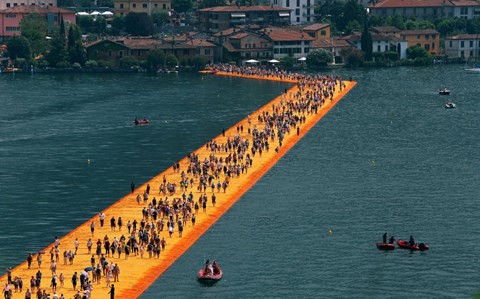 Tại hồ Iseo người ta cho dựng một cây cầu nổi sát mặt nước cho phép người đi bộ qua hồ cảm nhận cảm giác như đang bước đi trên nước.