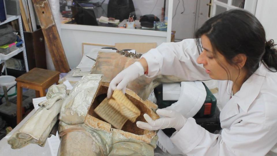 Các nhà nghiên cứu vừa phát hiện các mảnh giấy viết tay giấu trong phần mông của tượng chúa Jesus ở Tây Ban Nha.
