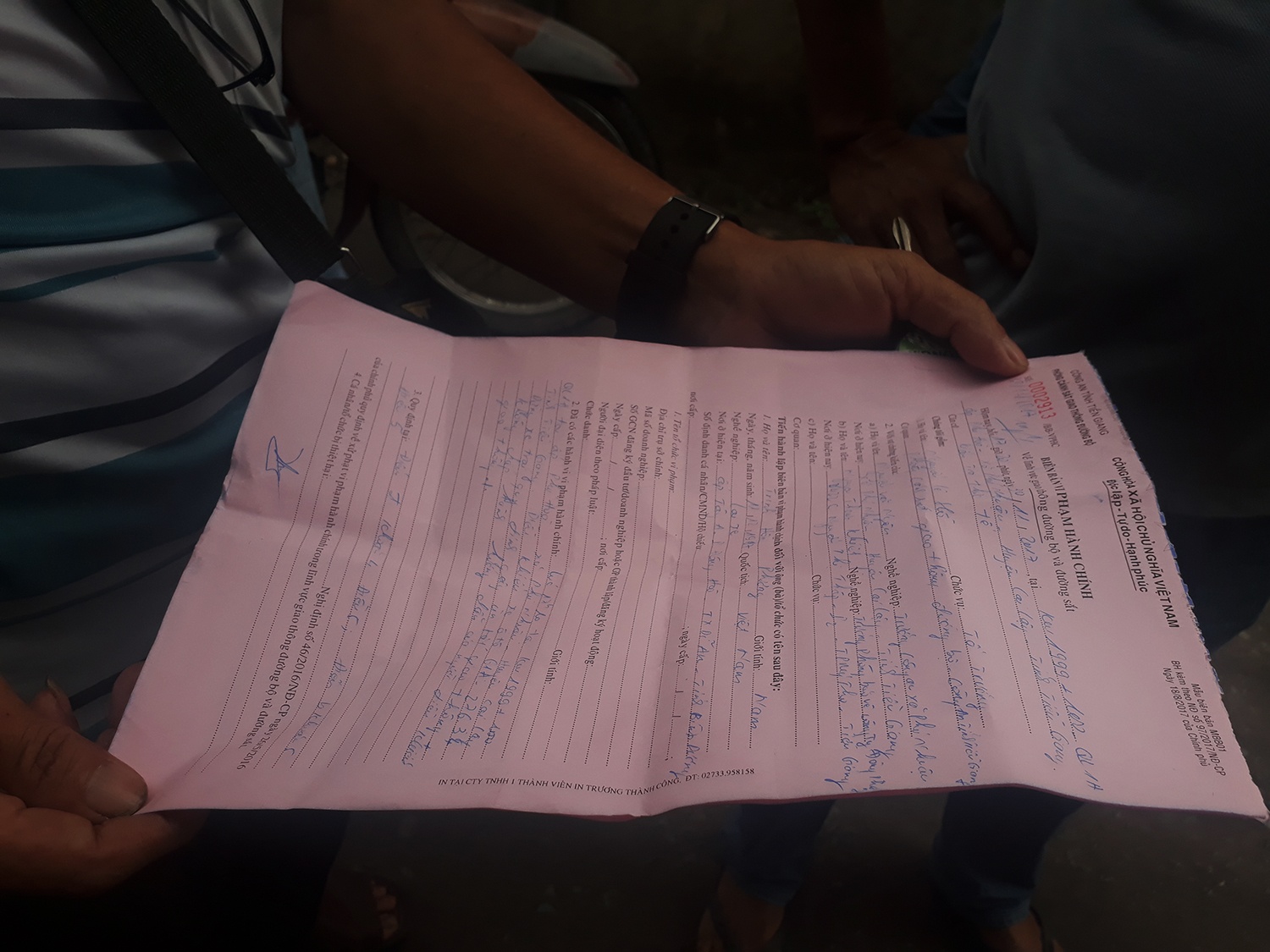 Biên bản tạm giữ GPLX của CSGT Tiền Giang đối với ông Phương. Ảnh: Văn Dũng