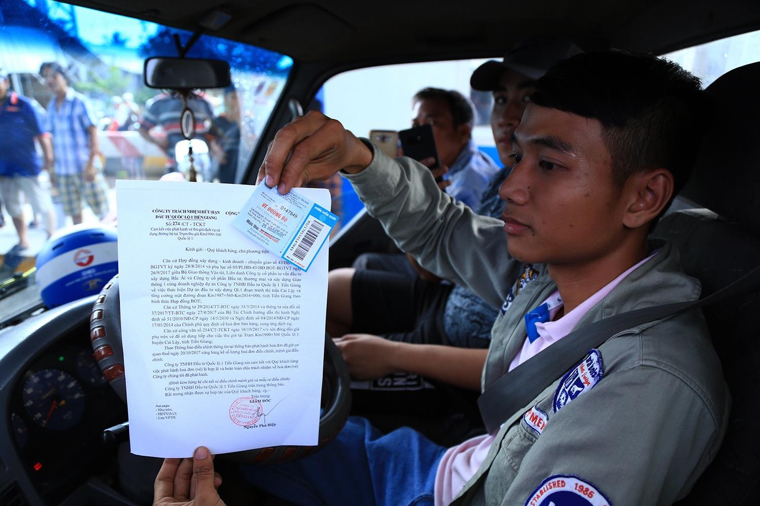Trước đó vào khoảng 17h ngày 30/11, tài xế Phương điều khiển xe 7 chỗ qua trạm thu phí BOT Cai Lậy. Ông Phương đưa nhân viên nhận tiền lẻ thì một lúc sau chiếc xe cẩu được điều tới và một CSGT đã tạm giữ Giấy phép lái xe hạng A1, B2 của ông Phương.