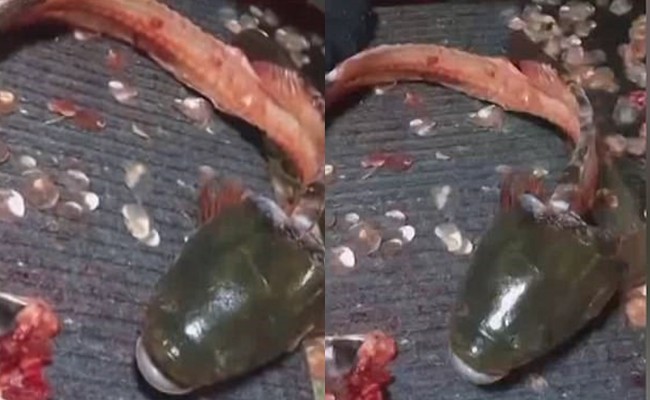 Trên trang Daily Mail mới đây có đăng tải một đoạn ghi lại cảnh chú cá chỉ còn phần đầu nhưng vẫn thở thoi thóp, nằm quẫy trên bàn. Được biết, đoạn clip trên được quay vào tháng trước tại thành phố Thành Đô, tỉnh Tứ Xuyên, Trung Quốc.