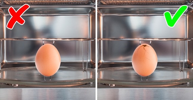 Công dụng làm nóng nhanh sẽ tạo ra nhiều hơi nước dưới vỏ trứng. Hơi nước không thoát được ra ngoài sẽ gây nổ bên trong lò vi sóng. Việc này không làm hỏng lò vi sóng của bạn nhưng sẽ khiến công tác vệ sinh gặp khó khăn.