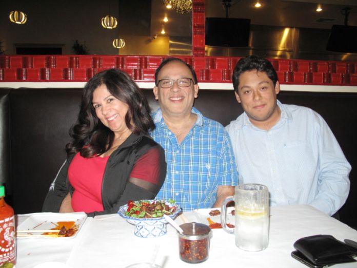 Ông Andy Mahtani cùng vợ và con trai tại nhà hàng Garlic and Chives. (Hình: Trúc Linh/Người Việt)