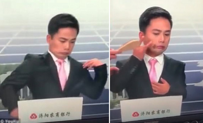 Nam MC của một đài truyền hình ở phía đông Trung Quốc rơi vào tình huống khó xử khi có một con ong đột nhiên lạc vào trường quay và đậu vào người anh trong lúc đang ghi hình cho bản tin.