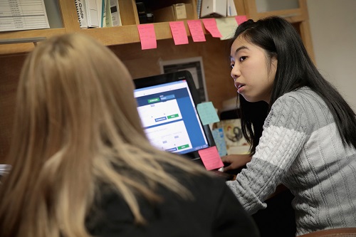 Cô Kelley Mui đang giúp một khách hàng ghi danh mua bảo hiểm sức khỏe tại Chicago trong tuần qua, qua chương trình Affordable Care Act còn được gọi là Obamacare. Tuy chính phủ Trump đã cắt bớt thời gian ghi danh và ngân sách cho chương trình này, số lượng người Mỹ ghi danh mua bảo hiểm cho năm 2018 đang có thể cao hơn năm ngoái. (Scott Olson/ Getty Images)