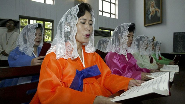 Người Triều Tiên cầu nguyện tại nhà thờ ở Bình Nhưỡng (Ảnh: Reuters)