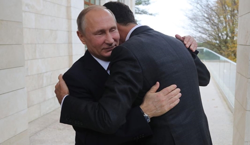 Tổng thống Nga Putin ôm người đồng nhiệm Syria Bashar al-Assad tại Sochi, Nga hồi tháng 11. Ảnh: AFP.