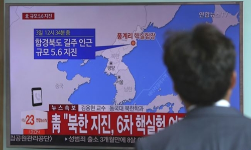Truyền hình Hàn Quốc đưa tin về vụ thử hạt nhân lần 6 hồi tháng 9/2017 của Triều Tiên.