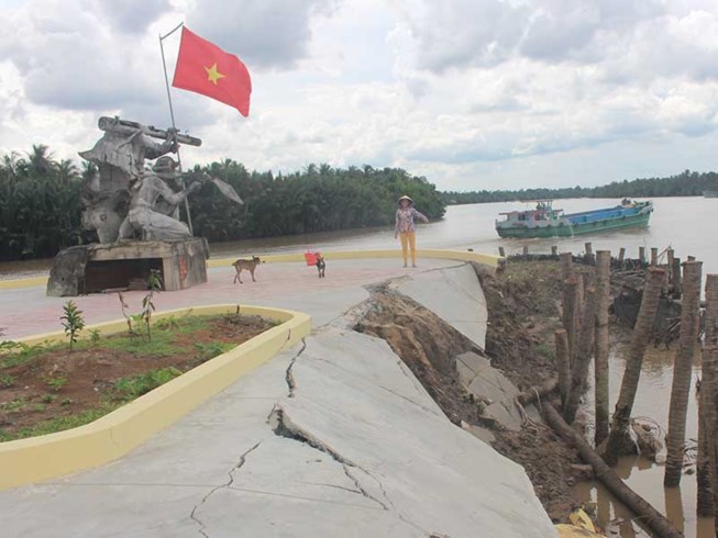 Theo ông Nguyễn Văn Nghĩa (62 tuổi, nhà ở sát khu tượng đài): Khi chính quyền chọn địa điểm trên xây khu tượng đài mới, người dân đã cảnh báo tình hình sạt lở rất nghiêm trọng nhưng họ phớt lờ.