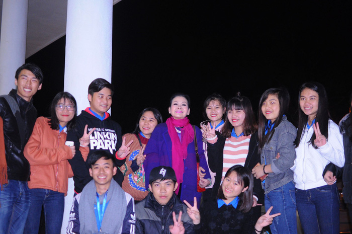 Sinh viên ĐH Đà Lạt chụp ảnh lưu niệm với danh ca Khánh Ly - Ảnh: LÂM THIÊN