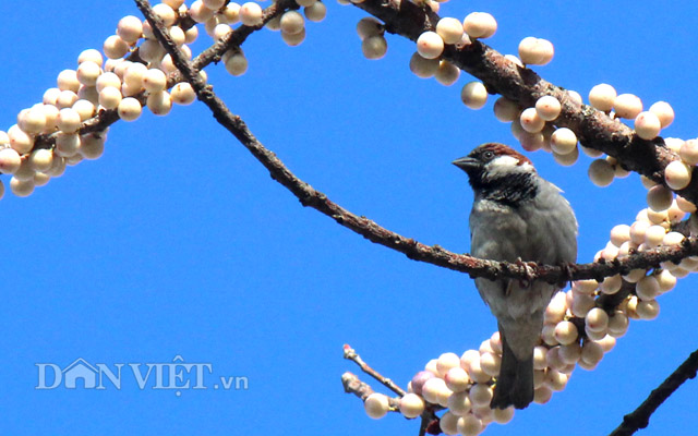 Trái cây đậu chi chít, trắng cả cành. Năm nay, cây sộp cổ thụ này đã nở hoa vào đúng dịp đầu năm như để chào đón mùa xuân mới- năm 2018. Ảnh Nguyên Vỹ