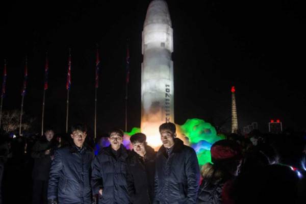 Hôm qua 3/1, Triều Tiên tổ chức lễ hộ điêu khắc tại Bình Nhưỡng. Người dân nước này nô nức về đây để tận mắt chứng kiến mô hình tên lửa Hwasong-15 được điêu khắc bằng băng.