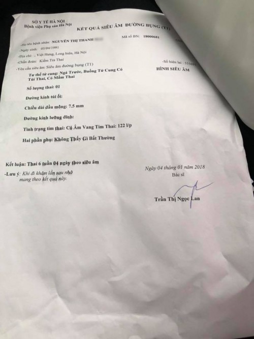 “Chiều mình quay lại làm thủ tục nộp tiền viện phí và gặp lại anh bác sĩ Tiến đó để hỏi rõ ràng thì có được câu trả lời là do anh ấy quên không cho chỉ đinh siêu âm đầu dò thôi nên anh ấy kết luận là thai chết lưu và không phát triển hơi vội vàng.