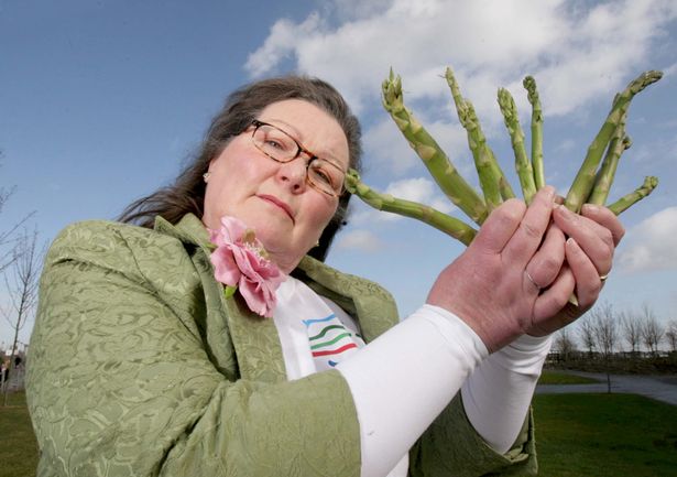 Jemima Packington, 61 tuổi, là người duy nhất trên thế giới dự đoán tương lai bằng măng tây. Cô tuyên bố mình có thể nhìn thấy tương lai sau khi ném măng tây lên cao và giải nghĩa cách chúng rơi xuống đất.