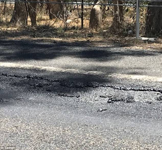 Nhựa đường cao tốc bắt đầu chảy, gây ảnh hưởng xấu đến giao thông. Ảnh: Twitter