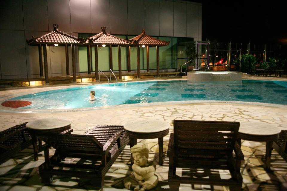 "...Ngoài ra còn có bể sục, quầy bar bên hồ bơi và tiện nghi tắm vòi sen cho khách du lịch trong khi đợi chuyến bay tiếp theo."