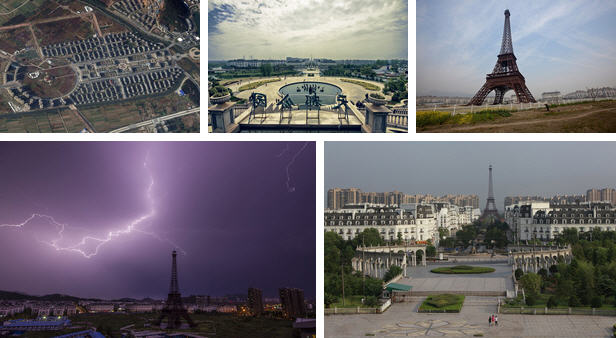 "Paris phiên bản lỗi" được khởi công từ năm 2007 tại khu Quảng Hạ Thiên Đô Thành ở Chiết Giang, tỉnh duyên hải Đông Nam Trung Quốc. Thế nhưng sau 8 năm xây dựng, t́nh trạng "vườn không nhà trống" đă khiến nơi đây bị người dân Trung Quốc coi là một "thành phố ma".