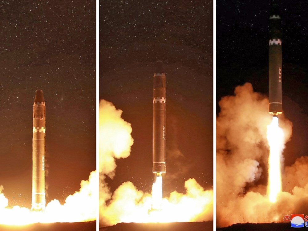 Triều Tiên phóng tên lửa đạn đạo liên lục địa Hwasong-15 vào ngày 29/11/2017. Ảnh: KCNA.