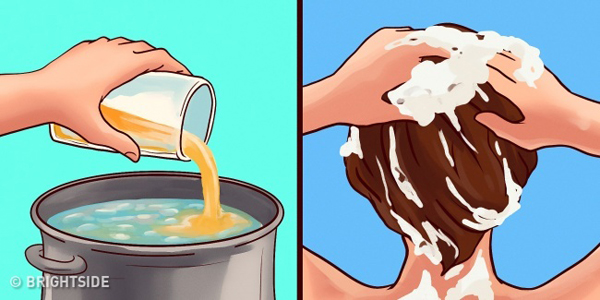 Dùng giấm táo thay cho dầu gội đầuCho 2-3 th́a dấm táo vào cốc nước ấm, thêm một th́a dầu ô liu và một th́a nước cốt chanh. Trộn đều hỗn hợp này sau đó thoa lên da đầu. Dùng khăn to quấn đầu và ủ trong khoảng 10-15 phút. Tiếp đó gội lại đầu bằng nước ấm. Áp dụng phương pháp này 1 - 2 lần mỗi tuần để thổi bay gàu, tăng sự mềm mượt cho tóc.