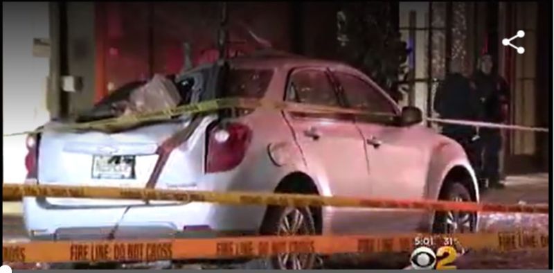 Chiếc xe bị khối nước đá rơi trúng ở New York.