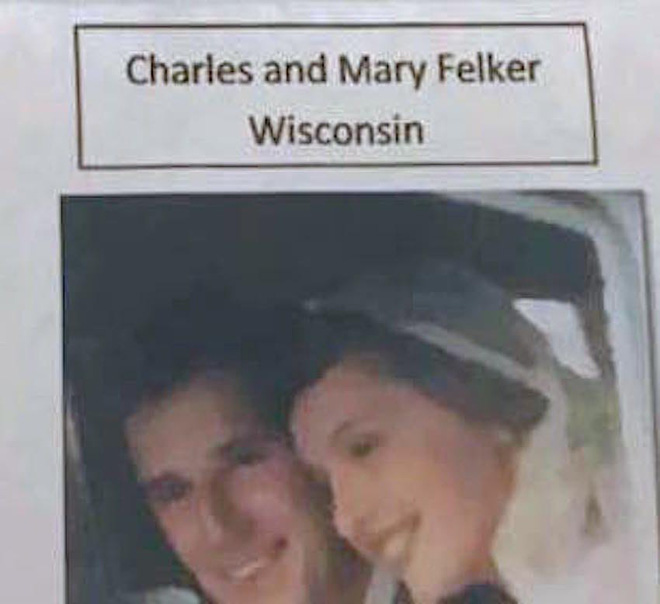 Hóa ra Chuck và Mary cũng chính là tên của bố mẹ quá cố của họ, ông bà Chuck và Mary Felker đến từ La Crosse, Wisconsin và đã có 62 năm sống bên nhau rất hạnh phúc cùng với 7 đứa con.
