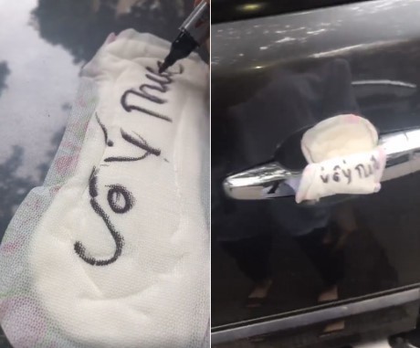 Cô gái dán băng vệ sinh viết chữ vô ý thức lên xe ô tô