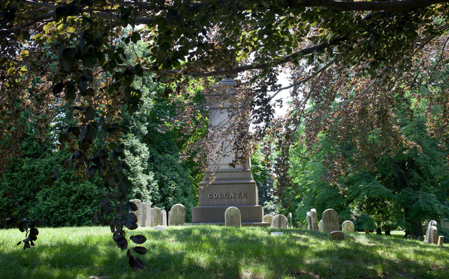 Nơi đây là lựa chọn hàng đầu cho những tỉ phú, doanh nhân, tài phiệt hàng đầu New York và nước Mỹ. Trong ảnh: phần mộ của William Colgate - người sáng lập công ty Colgate-Palmolive và Đại học Colgate.