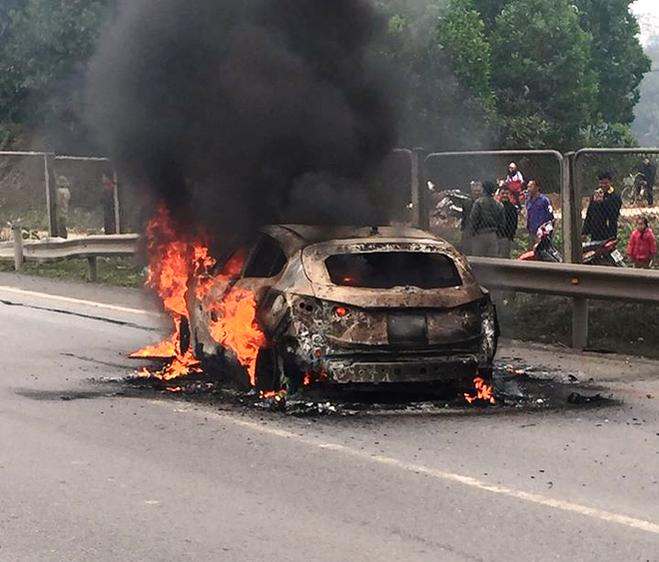 Một chiếc xe Mazda đang chạy trên cao tốc Hà Nội - Thái Nguyên đoạn km54+800 thì bất ngờ bốc cháy từ phía đuôi xe. Nhanh chóng chiếc xe bị thiêu rụi. Rất may những người bên trong xe kịp thoát ra ngoài.