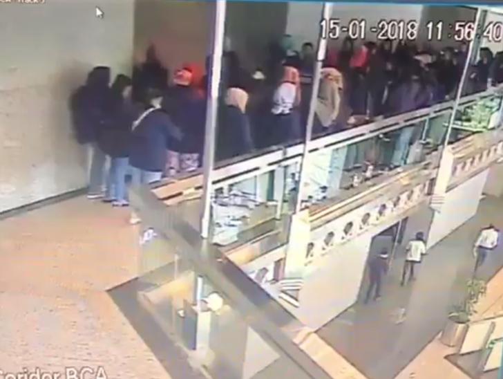 Đoạn camera an ninh ghi lại khung cảnh một đám đông - được cho là sinh viên đại học - đang đứng chờ bên ngoài một căn phòng trước khi sàn nhà bị đổ sập chỉ trong vài giây ngắn ngủi mà không hề có dấu hiệu gì trước đó.