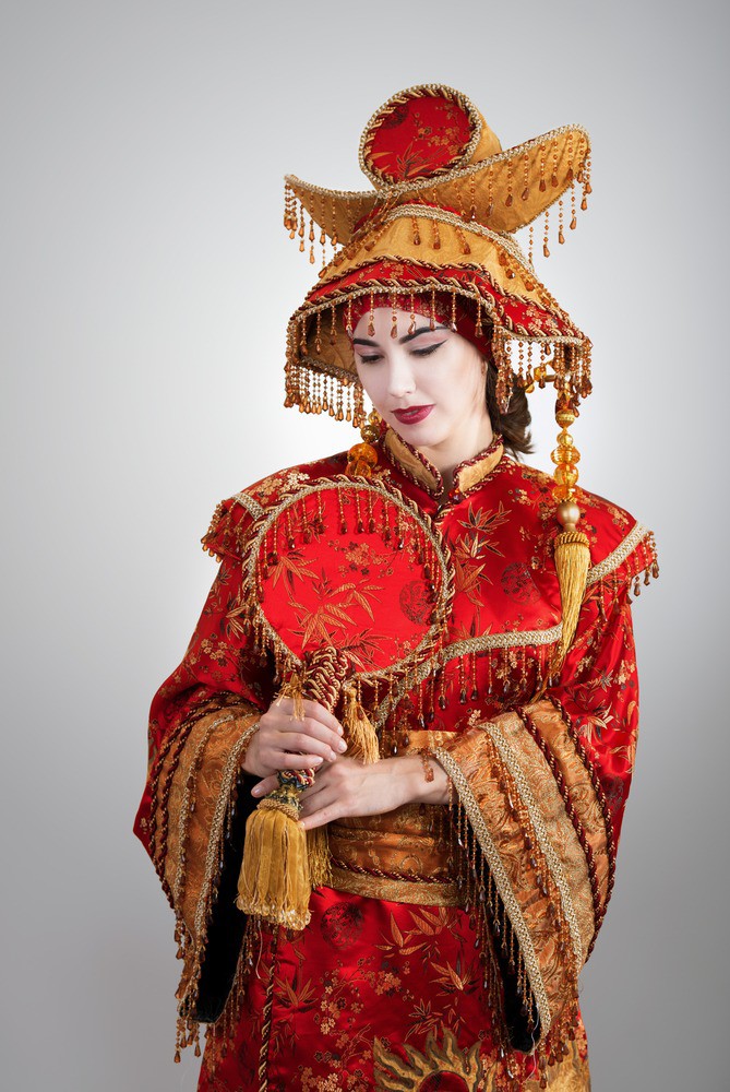 Để làm được bộ mặt trắng tinh như tượng, phụ nữ Trung Quốc cũng như Nhật Bản thường dùng tới bột gạo được giã nhỏ. Lông mày cũng được cạo ngắn đi đôi chút, khuôn mặt được trang điểm cầu kỳ, mái tóc được nhuộm bằng bột lá móng và cuối cùng là hàm răng được chăm chút với màu vàng hoặc nhuộm đen.