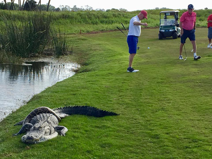 Yahoo hôm 17-1 đăng tải hình ảnh lý thú này. Richard Nadler – một trong những tay golf chứng kiến cảnh tượng lạ lùng này ở câu lạc bộ golf tại TP Naples và đăng tải những bức ảnh chụp lại được lên mạng xã hội.