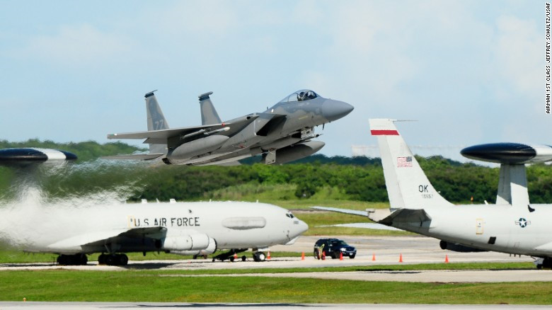 Hình ảnh Biểu tượng sức mạnh của Không quân Mỹ chiến đấu cơ F-15 cất cánh bên cạnh những chiếc E-3 Sentry dưới mặt đất. Nguồn ảnh: CNN.