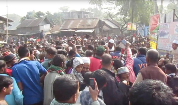 Đám đông người dân Bangladesh tập trung tại nơi con hổ bị đánh chết.