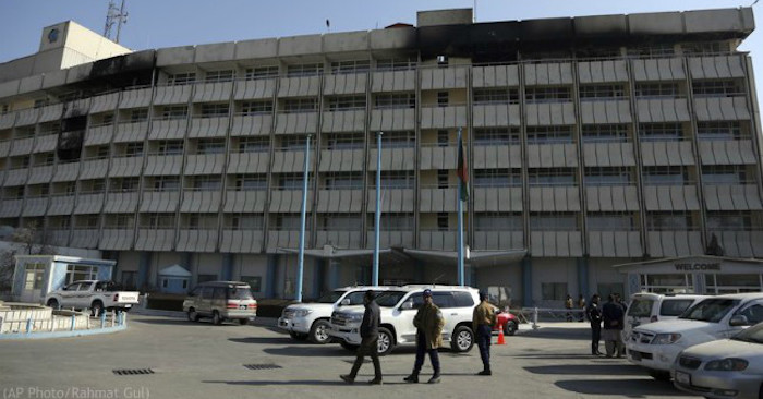 Các quan chức Afghanistan cho biết 6 kẻ khủng bố Taliban đã tấn công khách sạn Intercontinental ở thủ đô Kabul vào những ngày cuối tuần qua. Cuộc vây hãm 13 giờ chấm dứt khi an ninh Afghanistan tiêu diệt những kẻ khủng bố cuối cùng.