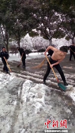 Old  Default Bất chấp thời tiết khắc nghiệt cảnh sát TQ cởi trần dọn tuyết​